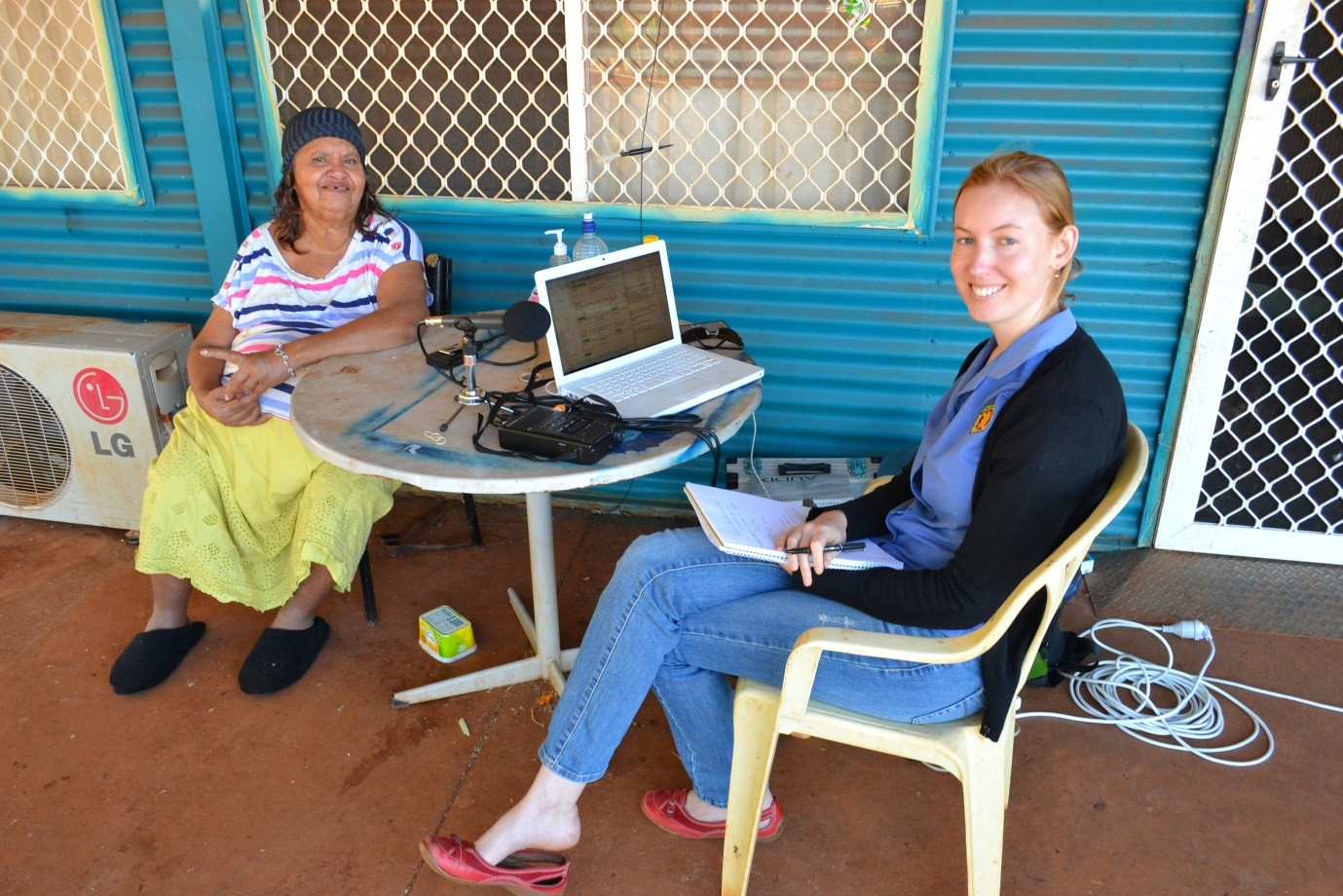 Yinhawangka Elder June Injie with former Wangka Maya Senior Linguist Jessica Mathie (photo: Amanda Hamilton).