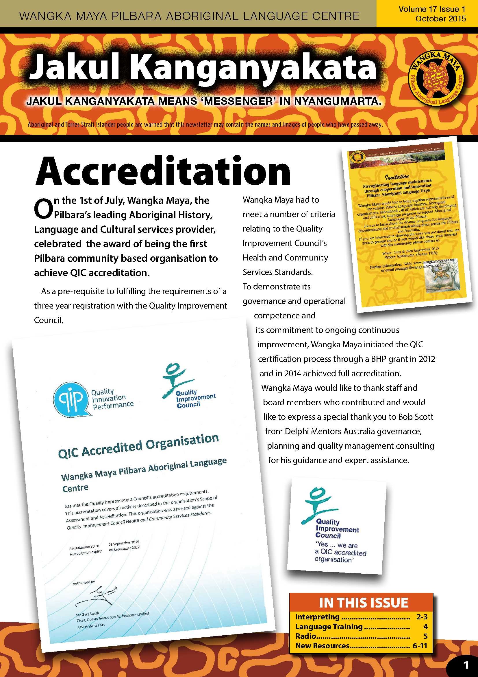 Wangka Maya Newsletter October 2015